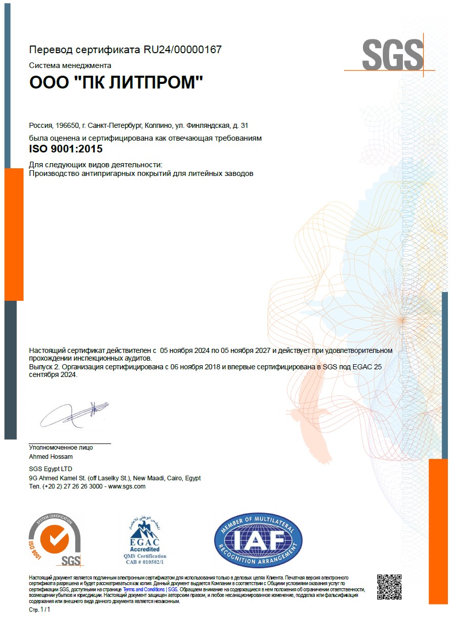 В ПК Литпром подтвержденная эффективность системы менеджмента